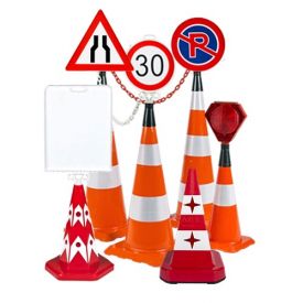 Conuri rutiere de diferite dimensiuni cu o folie sau mai multe, din cauciuc sau plastic