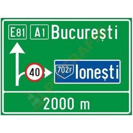 Indicator rutier de orientare F2 Presemnalizarea directiilor la o intersectie denivelata de drumuri