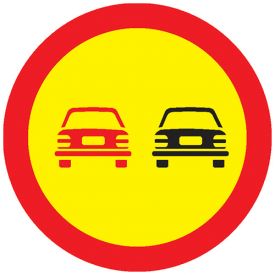 Indicator rutier temporar U12 Depasirea autovehiculelor, cu exceptia motocicletelor fara atas, intezisa