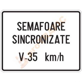 Panou aditional P22 Viteza recomandata pe un sector de drum cu semafoare sincronizate