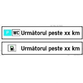 Panou aditional P42 presemnalizarea pe autostrada si drumuri expres pentru spatiu de servicii apropiat si distanta pana la urmatorul spatiu de servicii