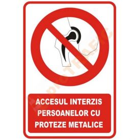 Indicator de securitate de interzicere "Accesul interzis persoanelor cu proteze metalice"