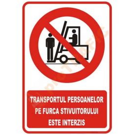Indicator de securitate de interzicere "Transportul persoanelor pe furca stivuitorului este interzis"