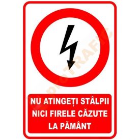 Indicator de securitate de interzicere "Nu atingeti stalpii nici firele cazute la pamant"