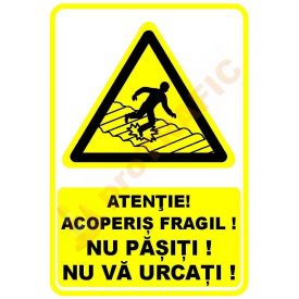 Indicator de securitate de avertizare "Atentie Acoperis fragil! NU pasiti! NU va urcati!"