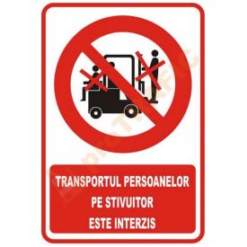 Indicator de securitate de interzicere "Transportul persoanelor pe stivuitor este interzis-model 2"