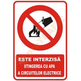 Indicator de securitate de interzicere "Este interzisa stingerea cu apa a circuitelor electrice"