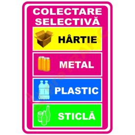 Indicator de securitate de informare generala "Colectare selectiva Hartie Metal Plastic Sticla"