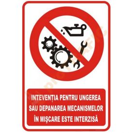 Indicator de securitate de interzicere "Interventia asupra mecanismelor in miscare este interzisa"