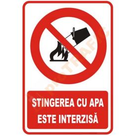 Indicator de securitate de interzicere "Stingerea cu apa este interzisa"