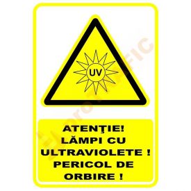 Indicator de securitate de avertizare "Atentie Lampi cu ultraviolete Pericol de orbire"