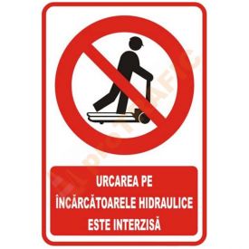 Indicator de securitate de interzicere "Urcarea pe incarcatoarele hidraulice este interzisa"