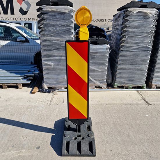 Kit baliza reflectorizanta cu baza de 28kg, folie clasa 2 cu lampa solara galbena si adaptor