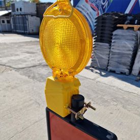 Baliza zone de lucrari, baza 15 kg, folie clasa 2 cu lampa cu baterie galbena