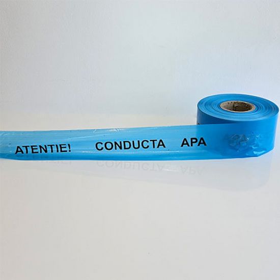 Banda avertizare APA, 100 mm x 500 m, culoare albastru, fara fir este folosita pentru semnalizarea conductelor de apa. Fabricata din material rezistent, ofera o vizibilitate ridicata si protejeaza zonele de lucrari. Este ideala pentru marcarea retelelor de apa subterane.