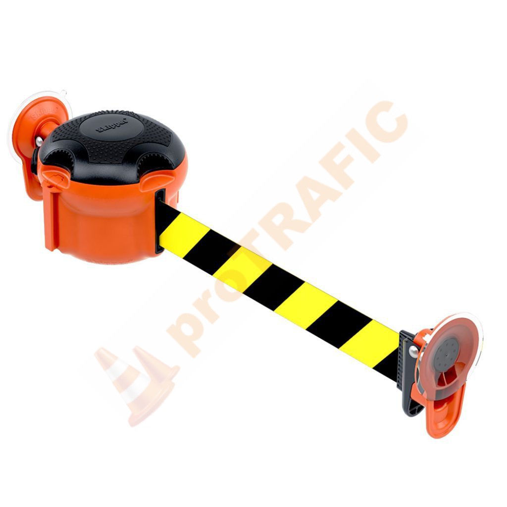 Banda retractabila sticla Skipper9m alb/rosu (kit) este ideal pentru a delimita spatiile din depozite, holuri, hale,etc. Acest model de banda retractabila il puteti folosi si pentru a limita accesul la anumite usi, lifturi si multe altele. Cu ajutorul ventuzelor putem folosi acest produs pentru delimitarea spatiului intre doua obiecte de sticla nefiind necesar un perete sau stalpi.