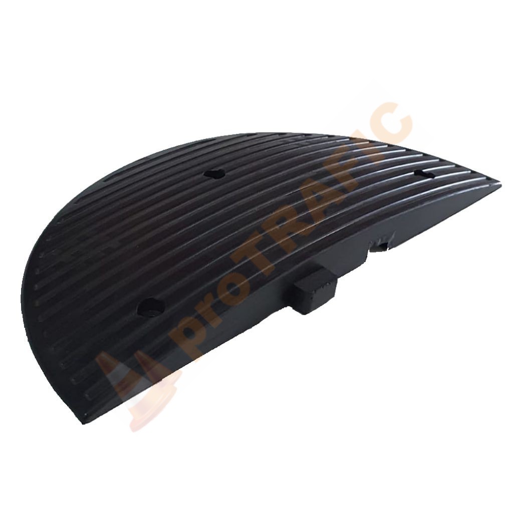 Capat limitator de viteza 300 x 600 x 45, din cauciuc cu inaltimea de 45mm ce ajuta la incetinirea vitezei traficului rutier cu pana la 30 km/h. Acest capat limitator de viteza 300 x 600 x 45, din cauciuc este folosit in  apropierea scolilor, gradinitelor , in parcarile centrelor comerciale si in toate zonele unde se doreste limitarea vitezei.