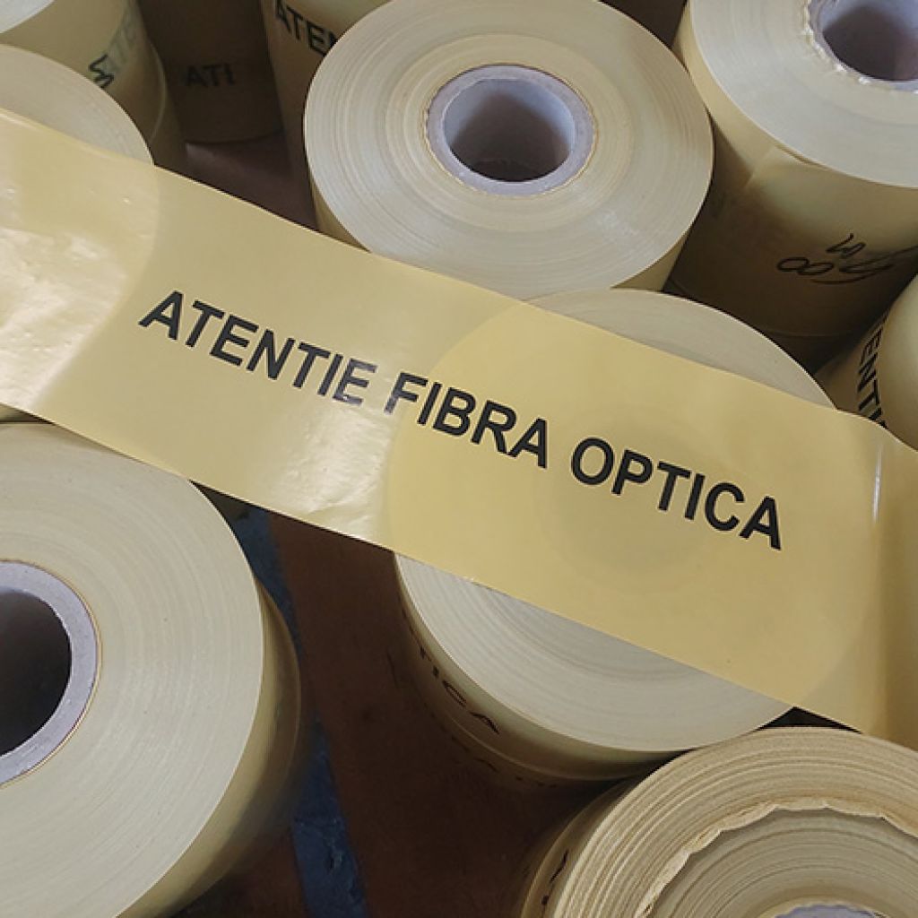 Folie avertizare Fibra Optica, 150 mm x 500 m, fara fir este folosita pentru semnalizarea fibrelor optice. Fabricata din material rezistent, ofera o vizibilitate ridicata si protejeaza zonele de lucrari. Este ideala pentru marcarea retelelor de fibra optica subterana.