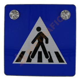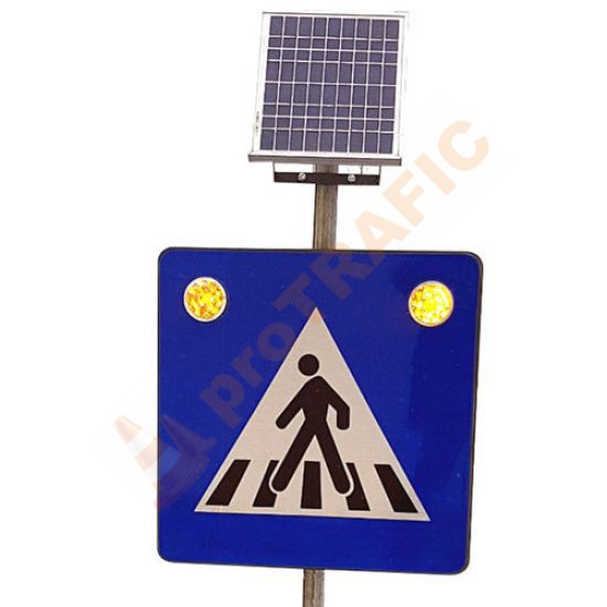 Indicator cu LED Trecere de pietoni și panou fotovoltaic Indicator cu LED Trecere de pietoni și panou fotovoltaic este folosit pentru atenționarea de la distantă asupra existenței unei treceri de pietoni. În colțuri sunt prevăzute cu lămpi cu led care sunt vizibile de la mare distantă.