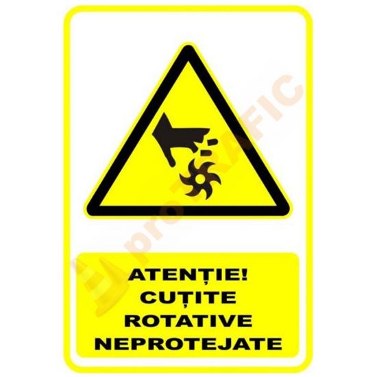 Indicator de securitate de avertizare 'Atentie Cutite rotative neprotejate'
