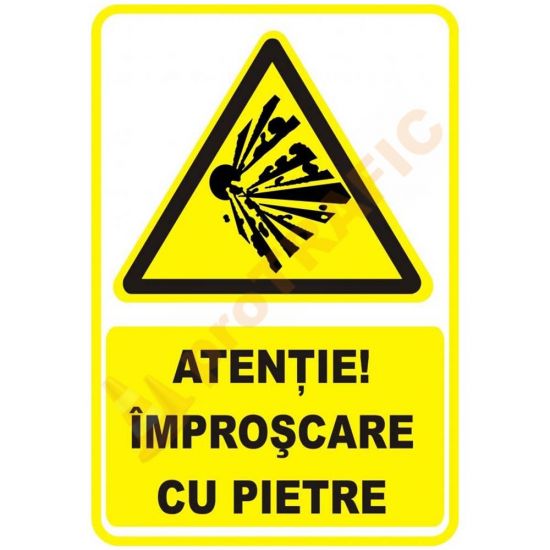 Indicator de securitate de avertizare 'Atentie Improscare cu pietre'