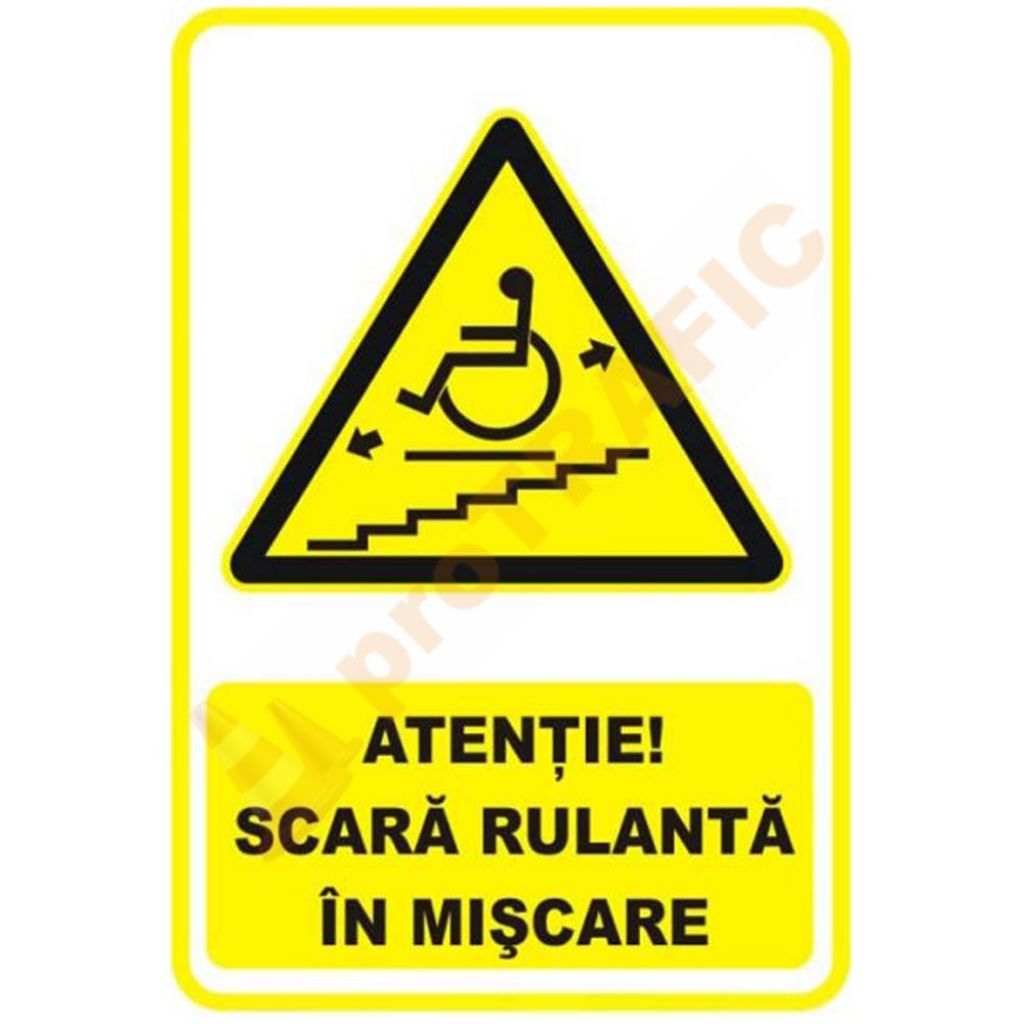 Indicator de securitate de avertizare 'Atentie Scara rulanta in miscare'