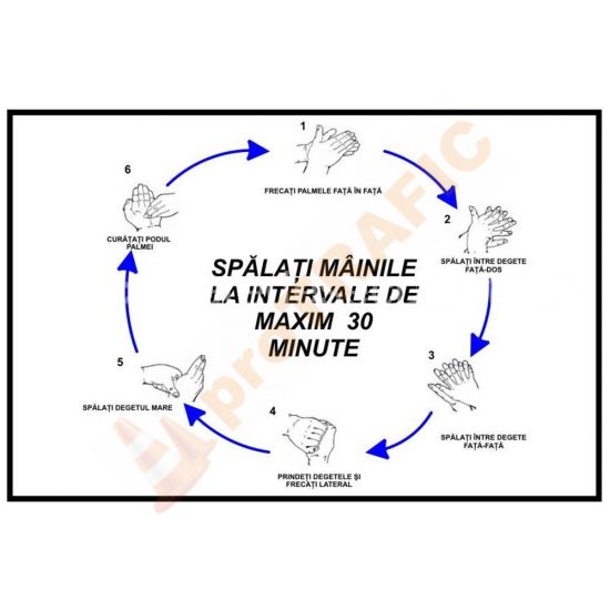 Indicator de securitate de informare generala 'Spalati-va pe maini la intervale de 30 de minute'