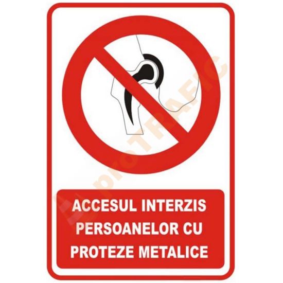 Indicator de securitate de interzicere 'Accesul interzis persoanelor cu proteze metalice'