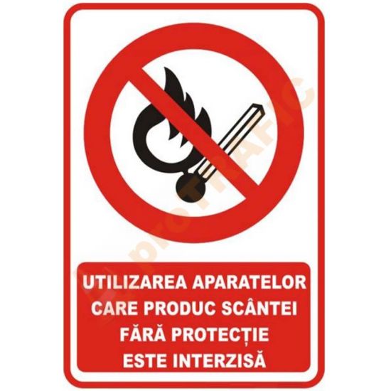 Indicator de securitate de interzicere 'Utilizarea aparatelor care produc scantei este interzisa'