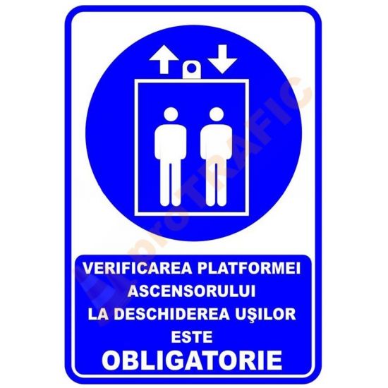 Indicator de securitate de obligativitate 'Verificarea platformei ascensorului la deschiderea usilor este obligatorie'