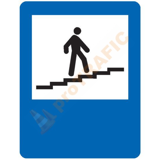 Indicatorul rutier din imaginea alăturată, se întâlnește în apropierea pasarelelor pentru pietoni. Pentru traversarea drumurilor din zona respectivă, pietonii sunt obligați să se deplaseze folosind pasarela.