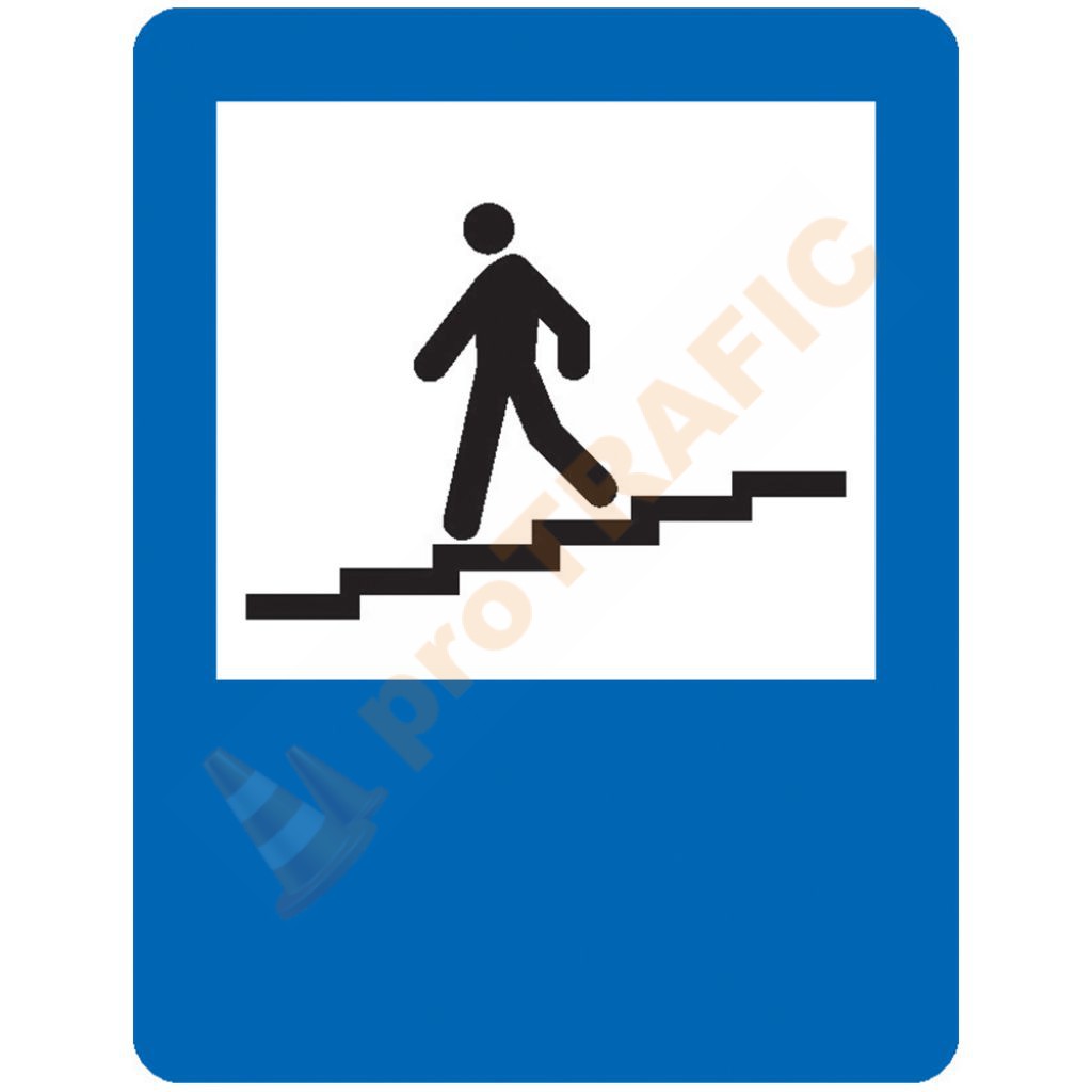 Indicatorul rutier din imaginea alăturată, se întâlnește în apropierea unui pasaj subteran. Pentru traversarea drumurilor din zona respectivă, pietonii sunt obligați să circule prin pasaj.