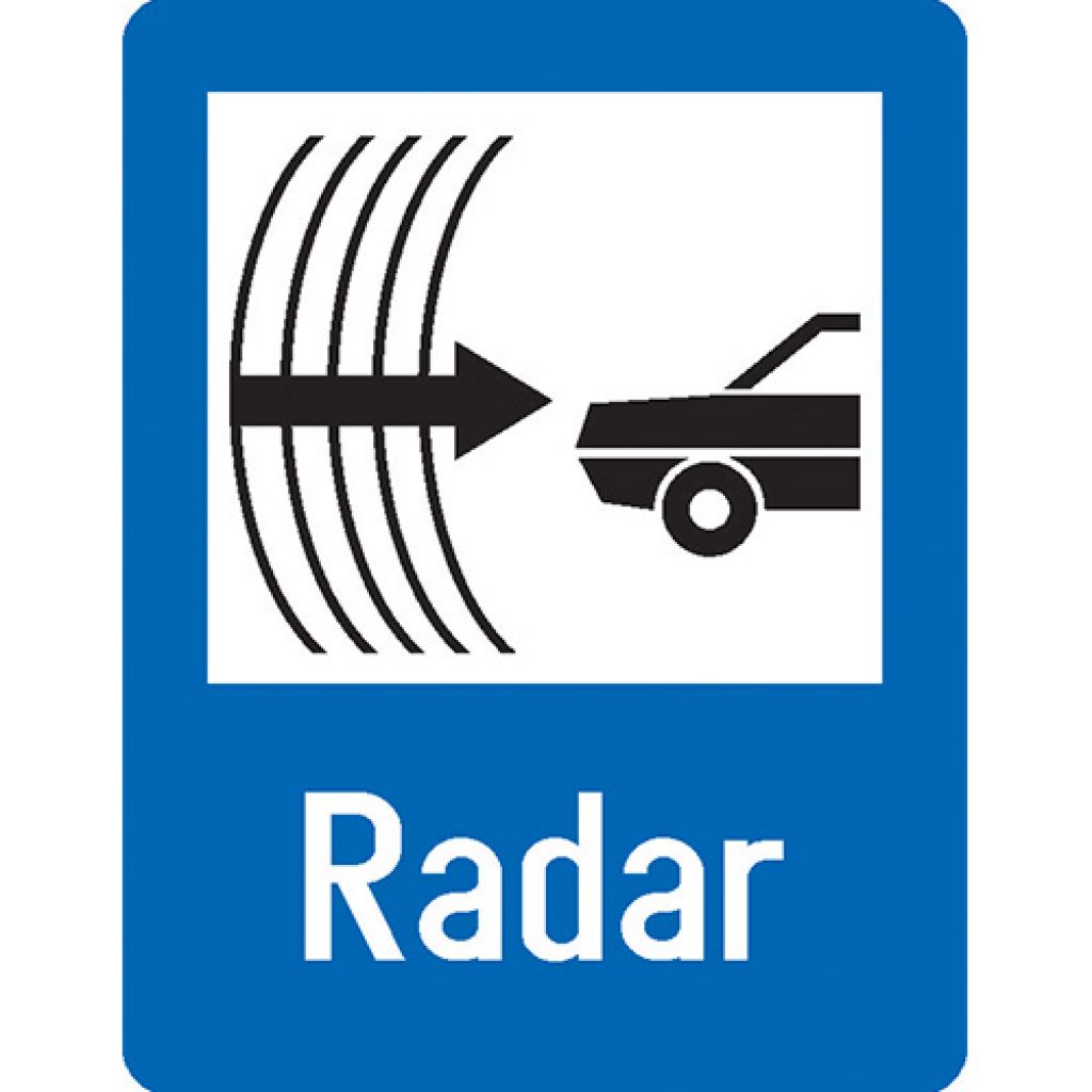 Acest indicator are forma dreptunghiulara, cu un fundal albastru si simboluri albe. Pictograma utilizata reprezinta de obicei un simbol stilizat al unui radar sau al unui aparat de masurare a vitezei. Este amplasat in zonele unde autoritatile efectueaza controale radar, avand rolul de a avertiza soferii sa respecte limitele de viteza stabilite pe sectorul de drum respectiv.