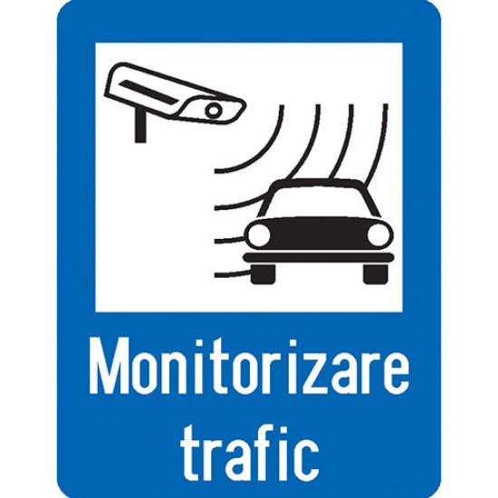 Indicator rutier de informare G68 Monitorizare Trafic semnalizeaza conducatorilor auto si participantilor la trafic ca zona respectiva este monitorizata video pentru supravegherea traficului. Acest indicator face parte din categoria indicatoarelor de orientare si informare.