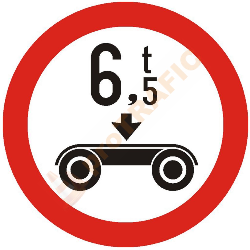 Indicator rutier interzicere sau restrictie C20 Accesul interzis vehiculelor cu masa pe osia dubla mai mare de ... t se instaleaza pe sectorul de drum pe care este interzis accesul vehiculelor cu o masa pe osie dubla mai mare decat cea inscriptionata pe panou.