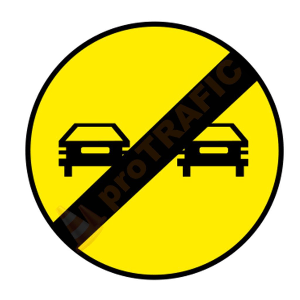 Aceste indicatoare rutiere se întâlnesc pe sectoarele de drum unde se execută lucrări pe partea carosabilă și au rolul de a preciza sfârșitul interzicerii de a depăși autovehicule.
