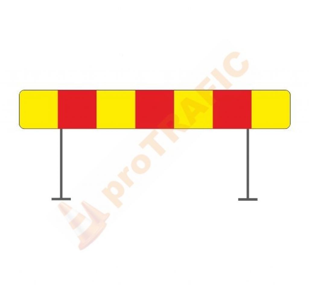 Acest indicator se intalneste pe sectoare de drum unde se desfasoara lucrari pe partea carosabila. Conducatorul auto trebuie sa ocoleasca bariera pe directia indicata de sageata.