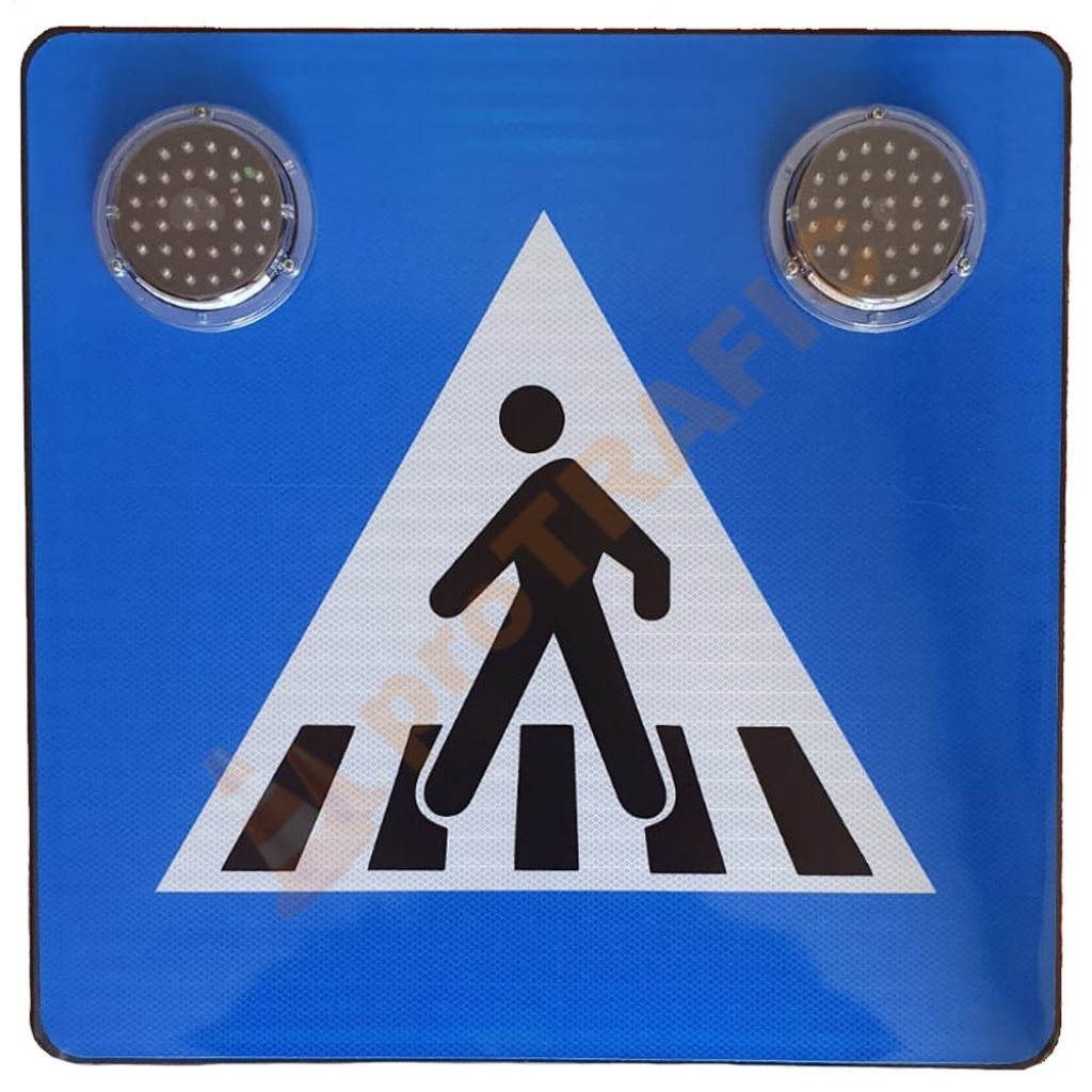 Indicator Trecere pietoni G1 cu Led, alimentare la iluminatul public, fara acumulator este folosit pentru atenționarea de la distantă asupra existenței unei treceri de pietoni. În colțuri sunt prevăzute cu lămpi cu led care sunt vizibile de la mare distantă.