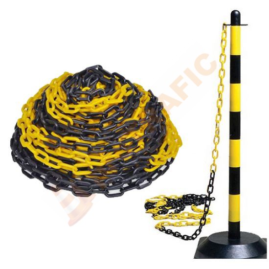Lant plastic Galben Negru 3 m folosit la delimitarea zonelor cu lucrări, a parcărilor dar și în scop ornamental.