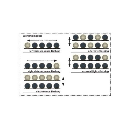 Aceste LED-uri ghidare trafic, 5 x 120 LED-uri, cu telecomanda sunt folosite in general pe autovehicule ce desfasoara lucrari pe carosabil si ajuta la directionarea traficului dar si la atentionarea participantilor la trafic asupra unui eveniment sau lucrare ce are loc in directia lor de mers.