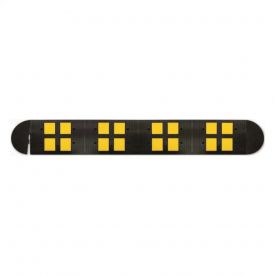 Materialul din care este realizat este cauciuc cu peliculă reflectorizantă de culoare galbenă și are sistemele de prindere în asfalt incluse.
