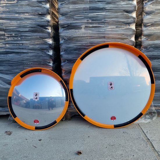 Oglinda circulatie 600 mm rotunda, portocaliu cu negru cu unghi mare de observație concepută special pentru a crește siguranța pietonilor și a bicicliștilor. Aceasta oglinda circulatie 600 mm rotunda, portocaliu cu negru ajută la vizualizarea în unghiurile moarte, în curbe și intersecții, a pietonilor și bicicliștilor de către toți conducătorii auto. Oglinda este confecționată din acril, un material cu o rezistentă la impact mai mare cu 70% decât sticlă. Oglinda poate fi fixată pe stâlpi (diam. 50-85mm), semafoarele sau pe indicatoarele de trecere de pietoni. Oglindă rutieră este livrată cu sistemul de prindere pe stâlp (diam. 50-85mm) si pentru perete.