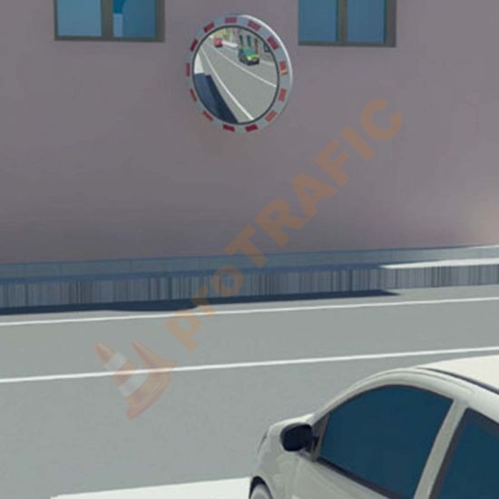 Oglinda de drum 1200 mm rotunda, alba cu rosu este utilizata în condiții de vizibilitate scăzută, în special la treceri și în interiorul parcărilor. Acest tip oglinda de drum 1200 mm rotunda, alba cu rosu se monteaza pe stâlpi.