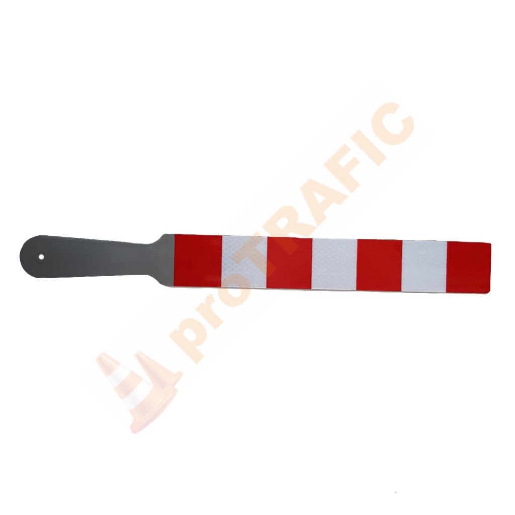 Paleta reflectorizanta de dirijare Alb Rosu atât dirijarea vehiculelor rutiere aflate în traffic de către agenții de circulație, cât și dirijarea vehiculelor rutiere în zonele unde au loc intervenții la partea carosabila de către angajații firmelor de construcții. Paleta reflectorizanta de dirijare Alb Rosu este confecționată din ABS injectat. Corpul paletei este format din două părți, partea de prindere având formă unui mâner, respectiv partea activă peste care este aplicată folia reflectorizanta.