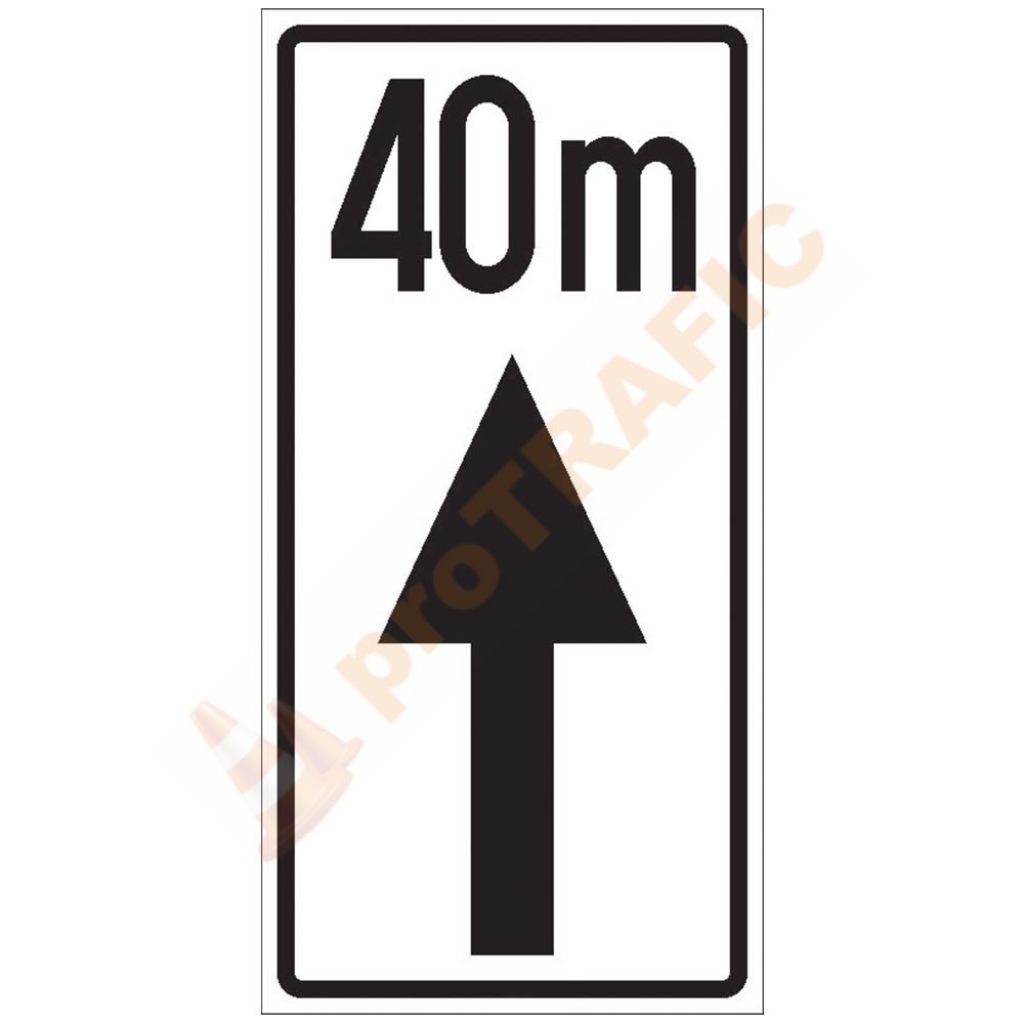 Se montează împreună cu unul din indicatoarele rutiere "Oprirea interzisă" sau "Staționarea interzisă". Are rolul de a preciza de unde începe și ce lungime are zona de acțiune a indicatorului rutier sub care este montat.