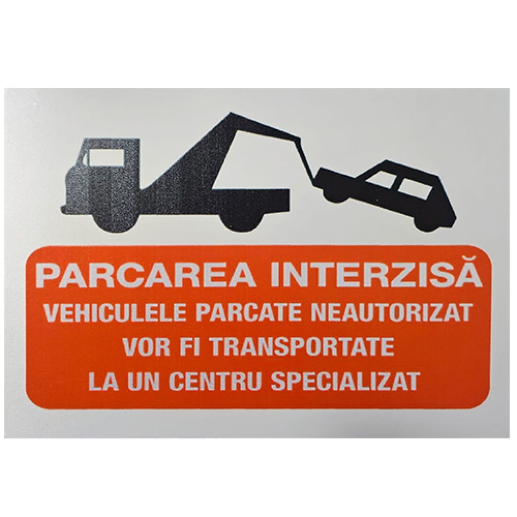 Placuta parcare PVC Parcarea interzisa Vehiculele parcate neautorizat vor fi transportate 200x300mm