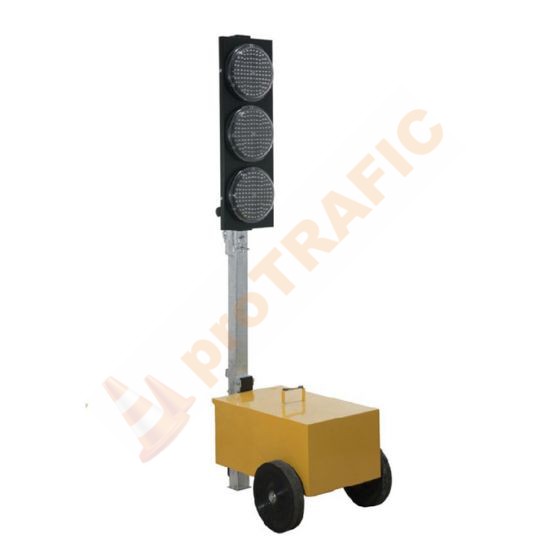 Un Semafor mobil model 1 este un echipament mobil ce este folosit pentru gestionarea si fluidizarea temporara a traficului rutier in zone unde se desfasoara lucrari precum santiere, constructii de drumuri dar si in zone unde au loc evenimente sau situatii de urgenta. Echipat cu Led-uri cu vizibilitate foarte buna, alimentate autonom prin baterii si cu o programare foarte usoara fac ca acest Semafor pentru lucrari sa fie solutia ideala in gestionarea traficului rutier.