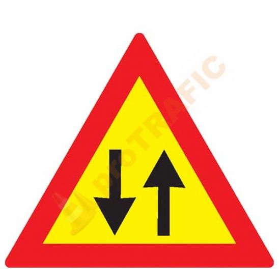 Se întâlnește pe sectoarele de drum unde se execută lucrări pe partea carosabilă, la capătul drumurilor cu sens unic. Indicatorul rutier îl avertizează pe conducător că circulația se desfășoară în ambele sensuri.