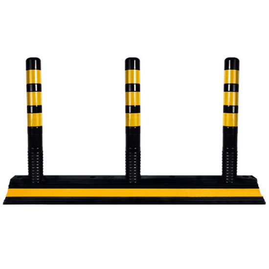 Separator de sens din cauciuc, cu trei stalpisori H75 cm si lungime 140 cm, este folosit pentru delimitarea benzilor de circulatie si dirijarea traficului. Fabricat din cauciuc suporta impacturi si conditii meteorologice variate. Stalpisorii flexibili au benzi reflectorizante pentru vizibilitate sporita. Se fixeaza pe carosabil cu dibluri si suruburi, asigurand stabilitate. Ideal pentru drumuri, parcari si piste de biciclete.
