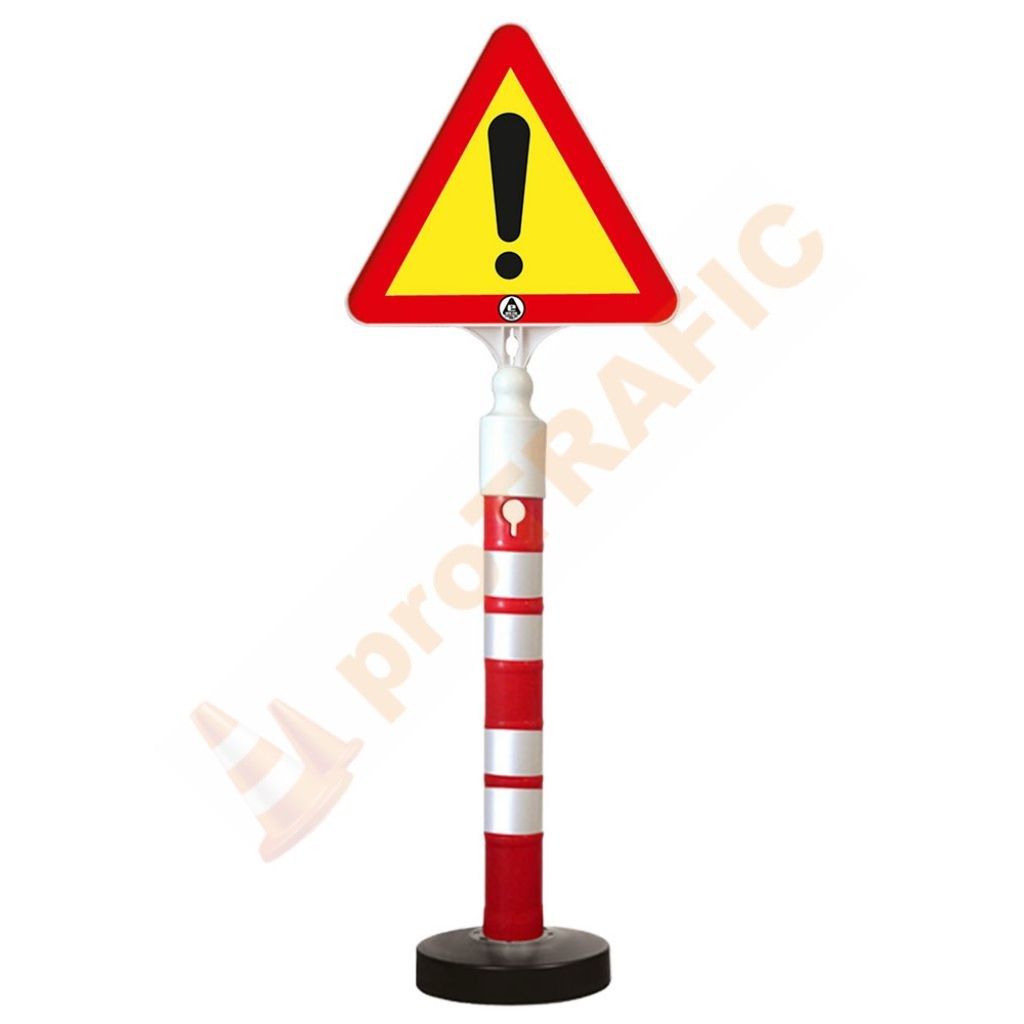 Stalp atentionare mobil 1200mm, 12kg cu indicator Atentie cu baza de plastic umpluta cu nisip si o greutate de 12 kg, este un dispozitiv mobil si stabil, ideal pentru marcarea diferitelor spatii sau ghidarea traficului in diverse contexte. Acesta este confectionat din plastic durabil, este usor de manevrat si rezistent la conditii atmosferice variate.